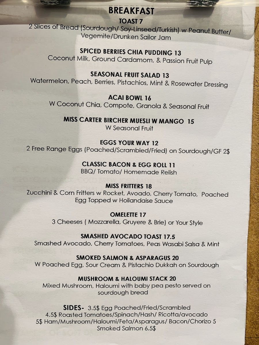 Miss Carter Cafe Menu